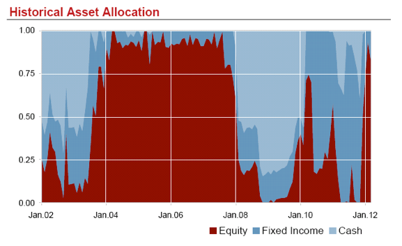 The Lakefield Global Core Dynamic Re-Allocation Strategy (‘Global Core DRS’) moves between equities, bonds and cash depending on short-term market outlook: Into equities in phases with positive outlook and into bonds and cash in phases with an unfavorable outlook for equities.